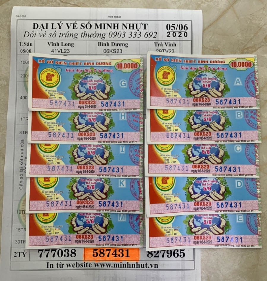 Đổi số trúng cho khách hàng ở gò công tây Tiền Giang mua vé số bình dương ngày 05-06-2020