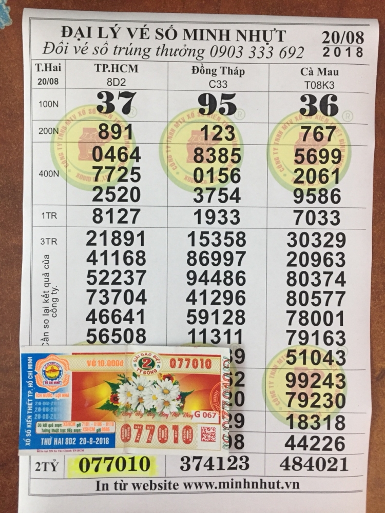 Đổi số trúng khách hàng mua vé Số thành phố Hồ Chí Minh trúng đặc biệt tại An Giang ngày 20-08-2018