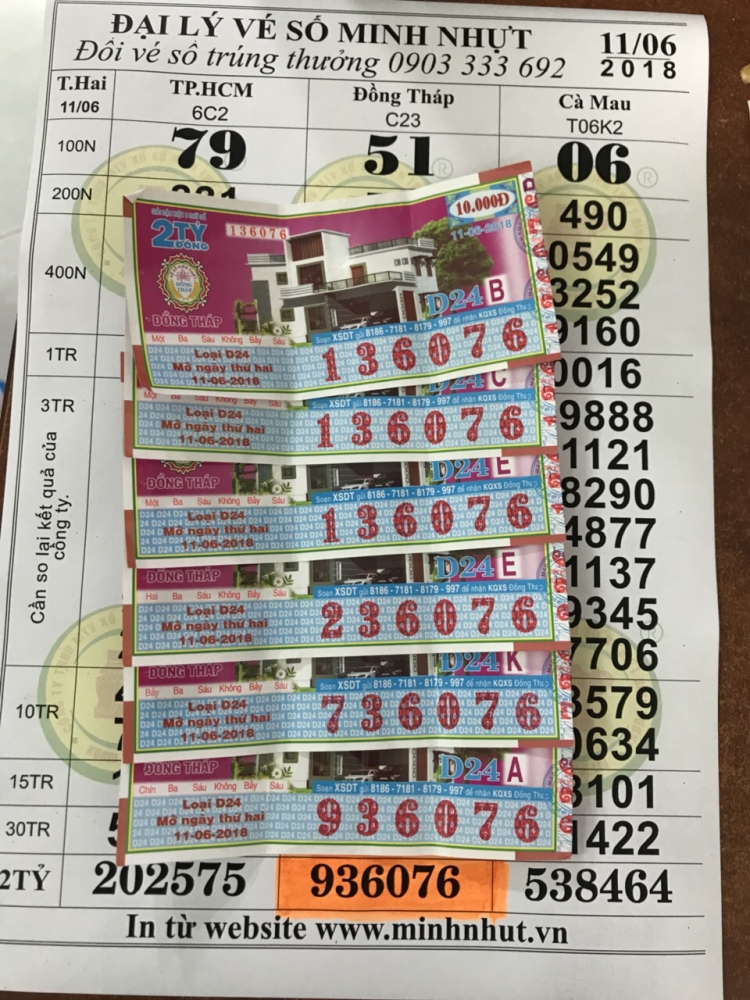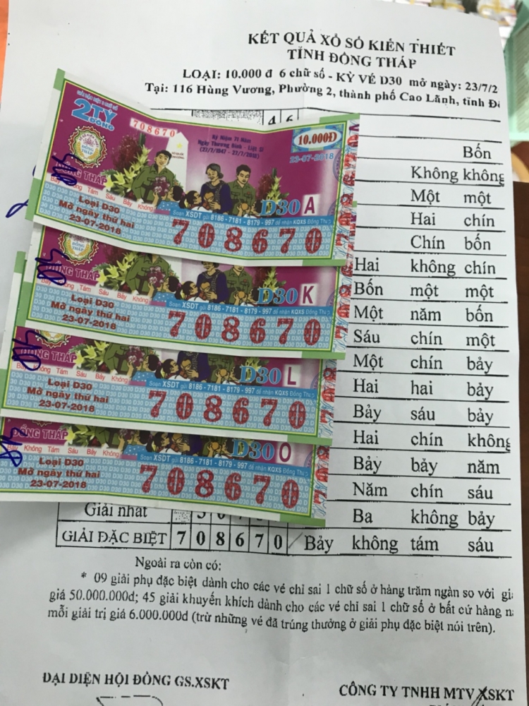 Đổi vé sô trúng đặc biệt cho khách hàng tại tphcm mua vé đồng tháp ngày 11-06-2018