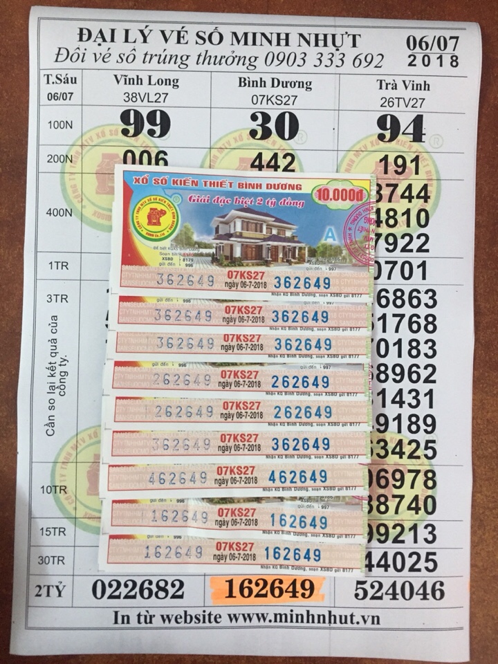 Đổi số trúng cho khách hàng tại tphcm mua vé bình dương trúng ngày 06-07-2018