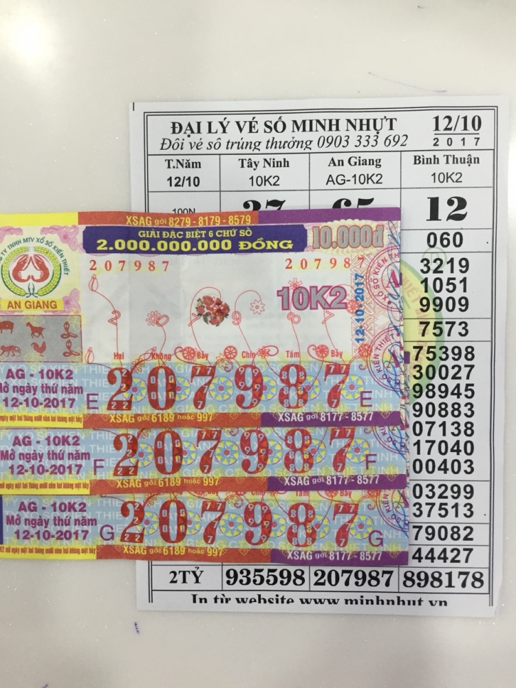 Vé số An Giang xổ ngày 12/10 trúng ĐB tại Gò Vấp TP.HCM