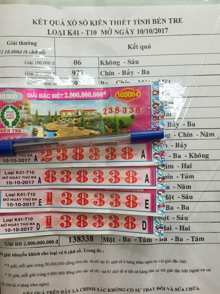 Vé số Bến Tre xổ ngày 10/10 trúng ĐB tại Bình Thạnh tp