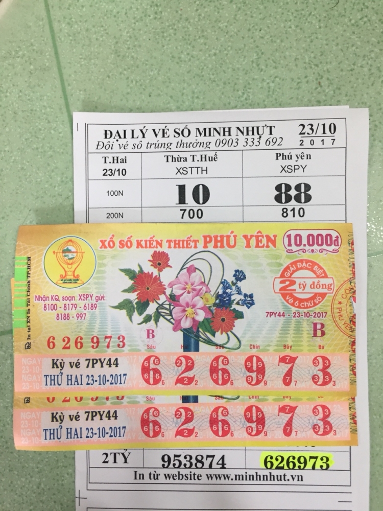 Vé số Phú Yên xổ ngày 23/10 trúng tại Nha Trang