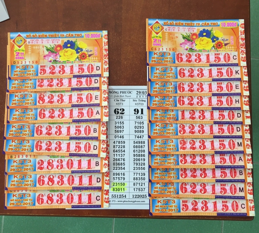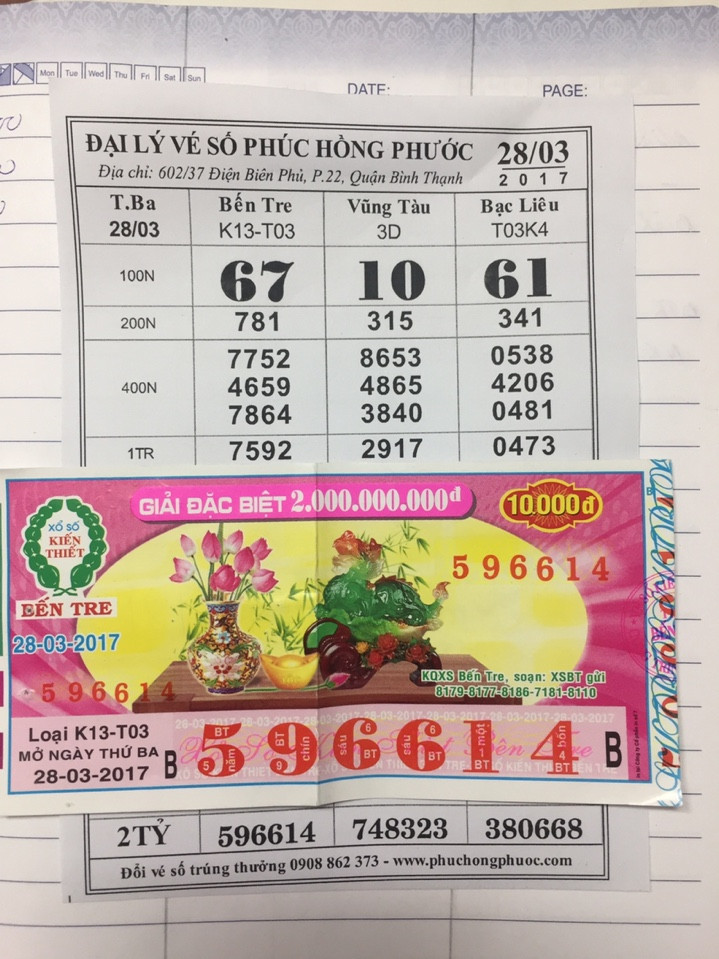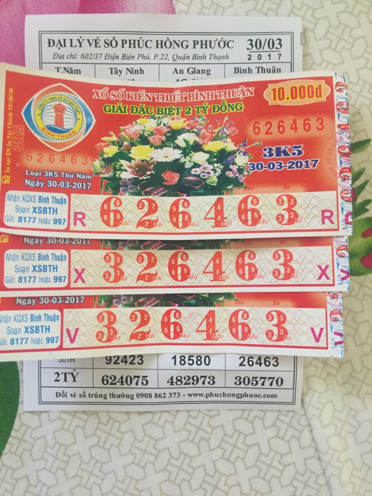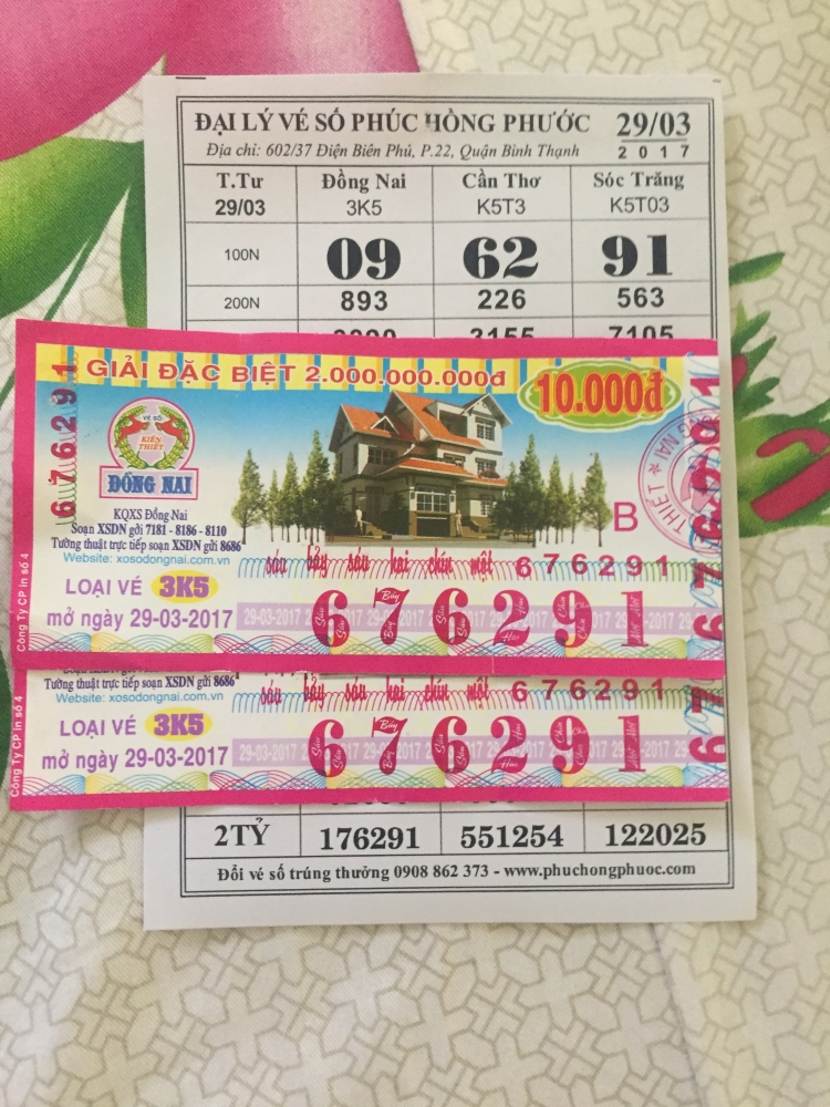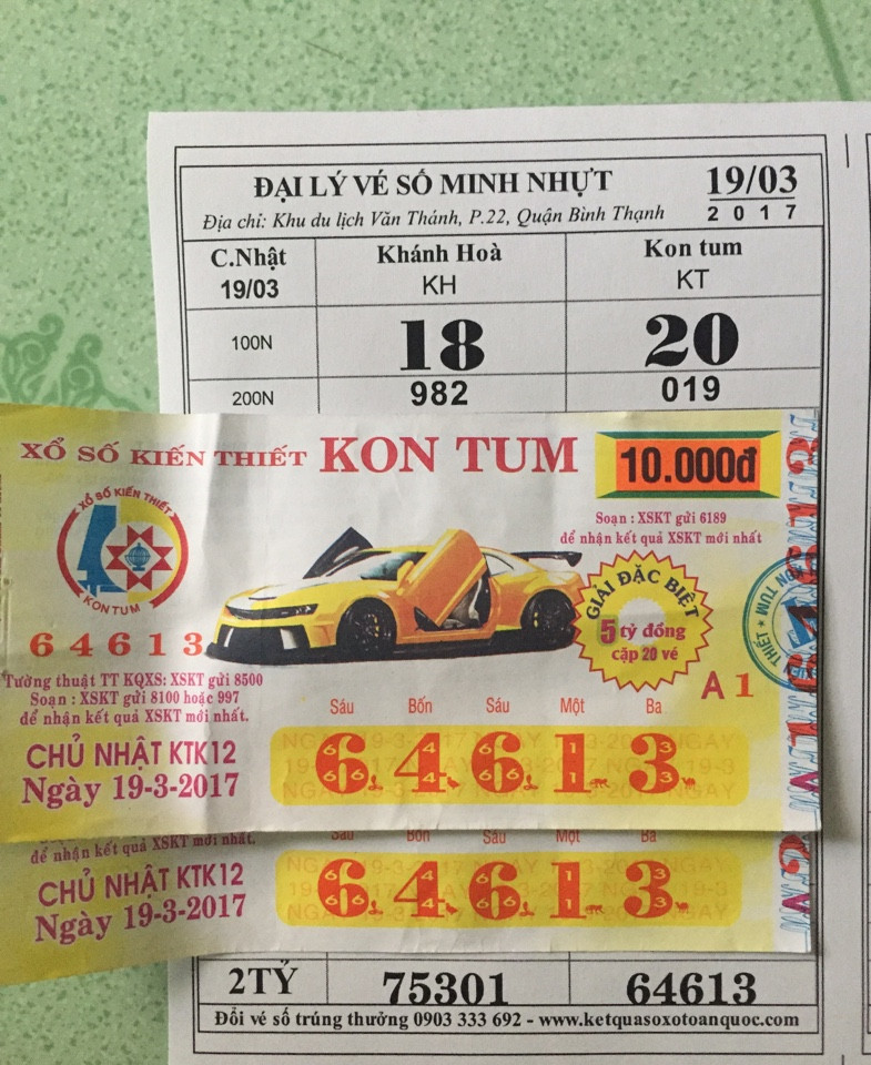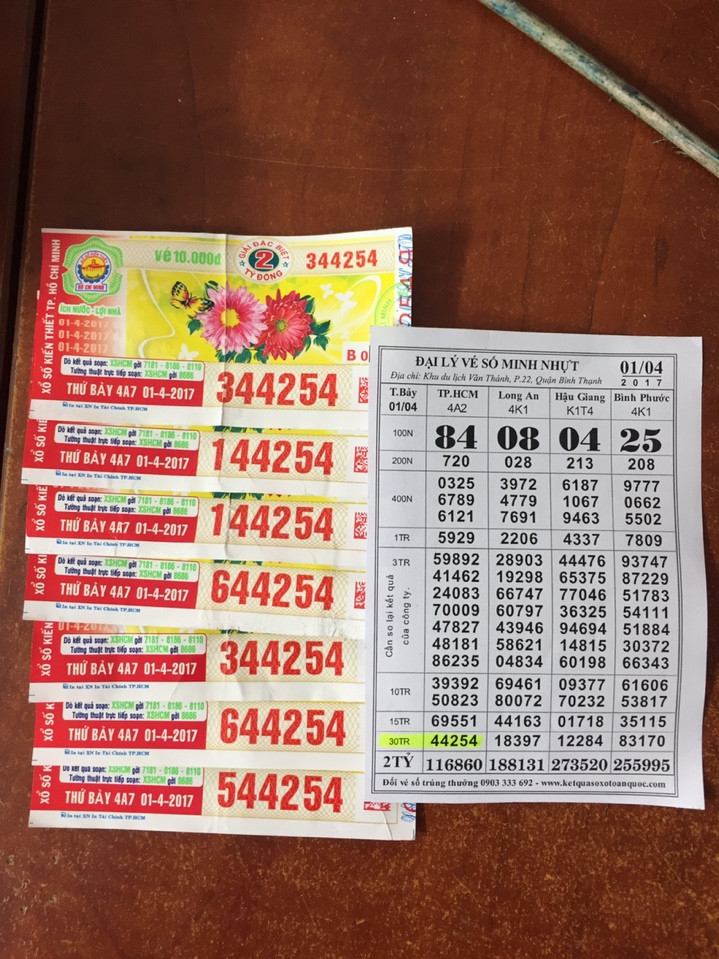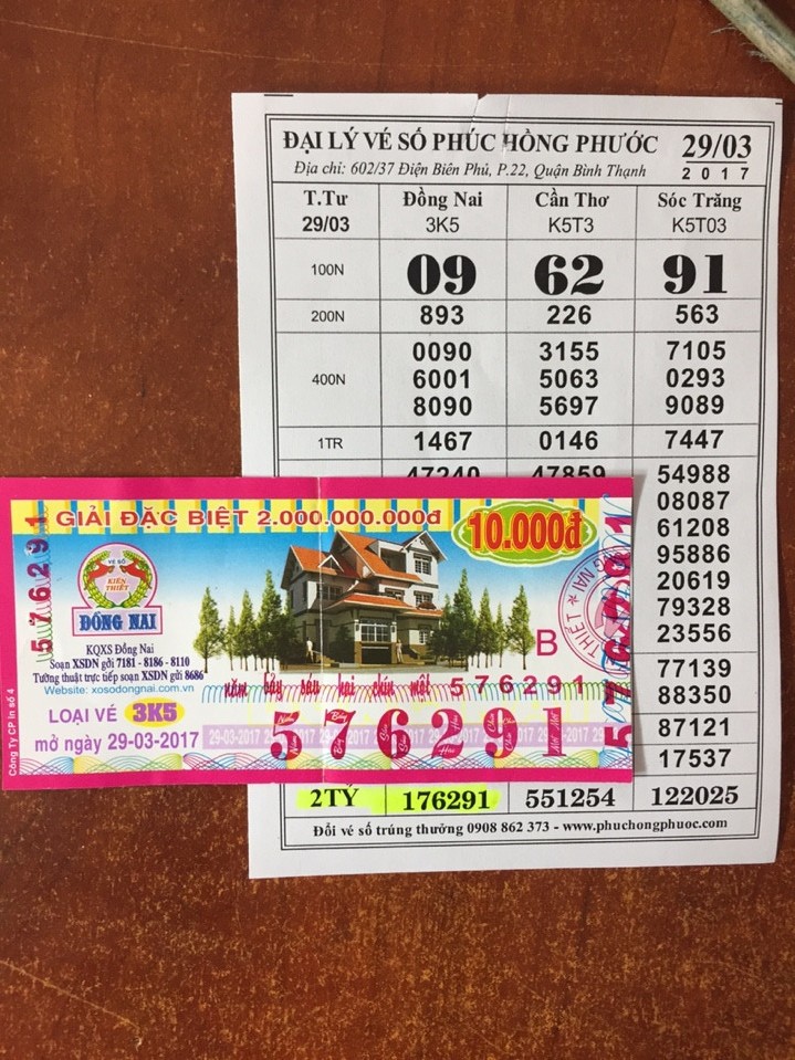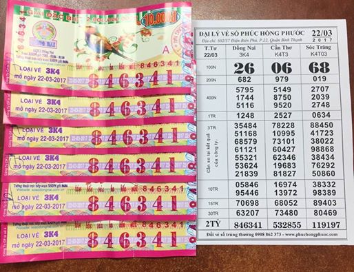 Vé đặc biệt đồng nai 22/03/2017 trúng ở quận tân phú tphcm Đại lý Minh Nhựt đổi được 6 vé