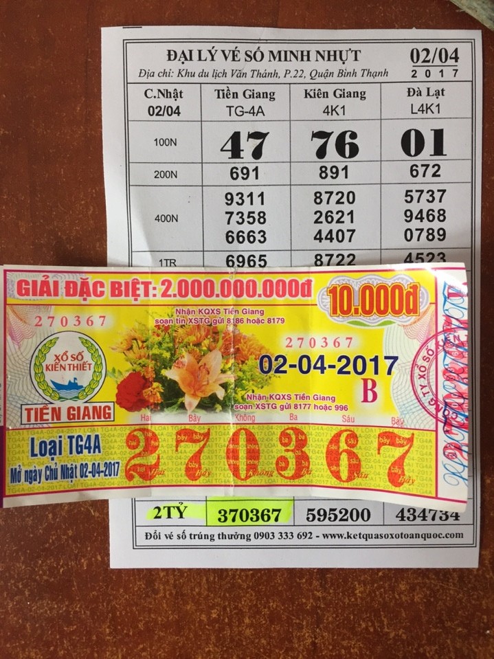 Vé tiền giang trúng đặc biệt ngày 2/4/2017