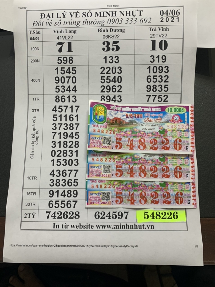 Minh nhựt đổi vé số trúng đặc biệt cho khách hàng tại bình dương mua vé số tphcm ngày 27/12/2025