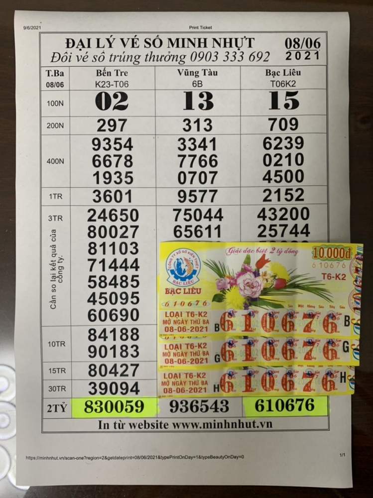 Đổi số trúng cho khách hàng tại quận phú nhuận trúng đặc biệt khi mua vé số bạc liêu ngày 08-06-2021